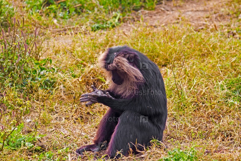 Зоопарк Нью-Дели. Львинохвостый макак рассматривает что-то у себя в ладони