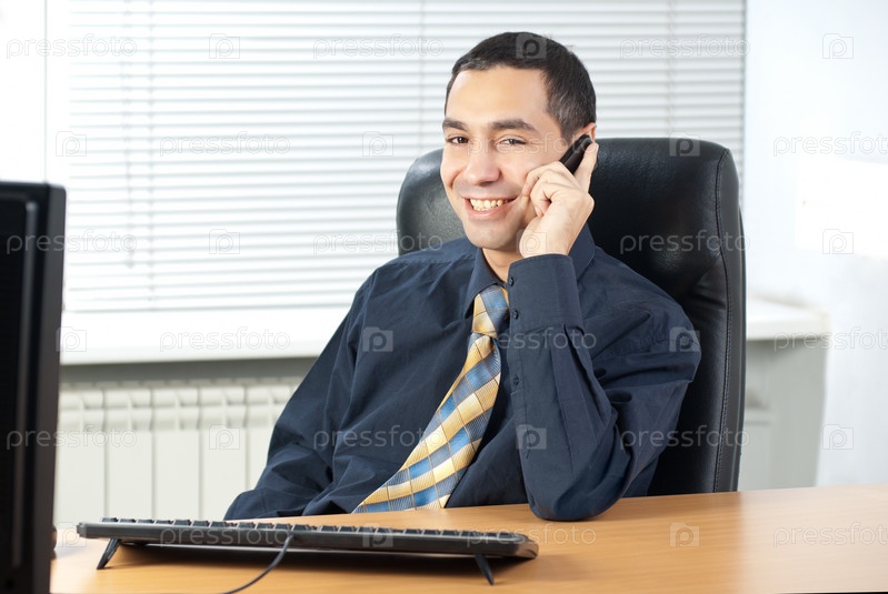 Молодой бизнесмен разговаривает по телефону