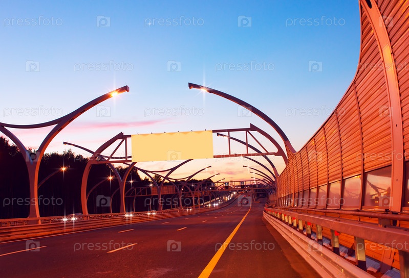 Пустой рекламный щит на шоссе ночью