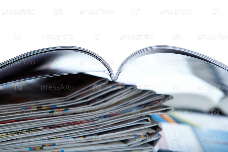 Стопка газет, журнал и клавиатура
