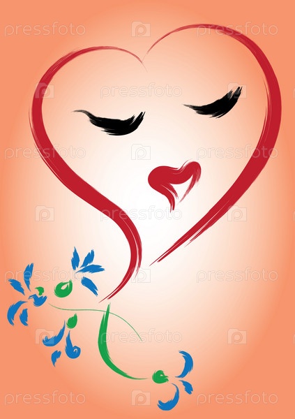 Поздравительная открытка с сердцем и цветами. симуляция акварели. векторная иллюстрация
