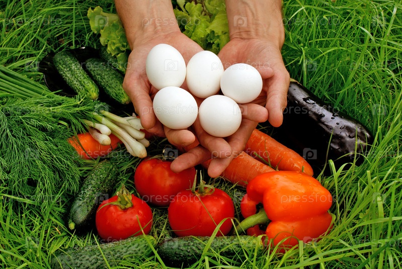 Аппетитные свежие овощи и яйца