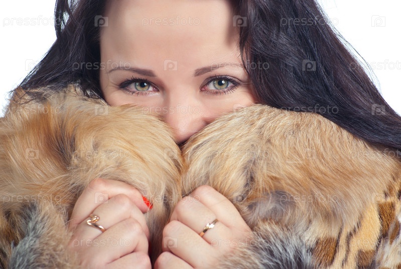 Портрет красивой женщины в шубе на белом фоне