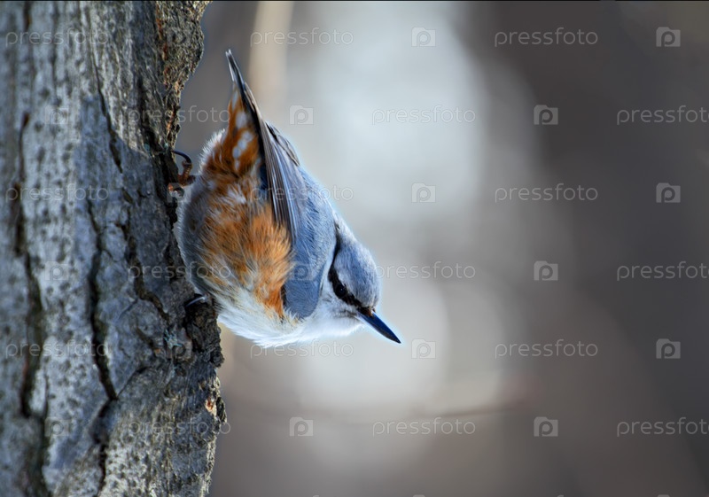 Птичка сидит на стволе дерева