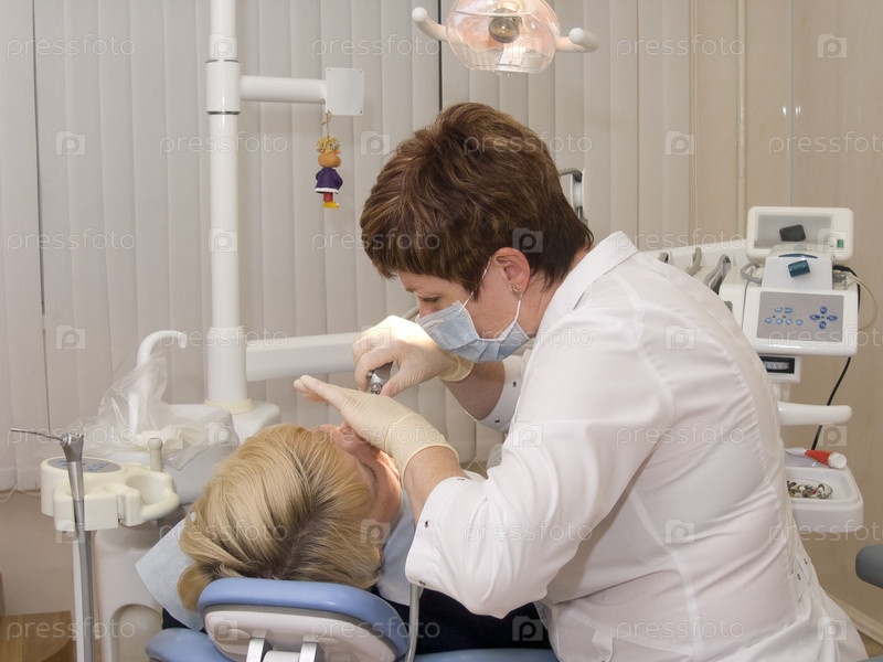 Стоматолог лечит тациента. The stomatologist treats the patient.