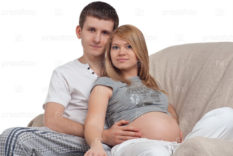 Молодая беременная женщина с мужем на диване