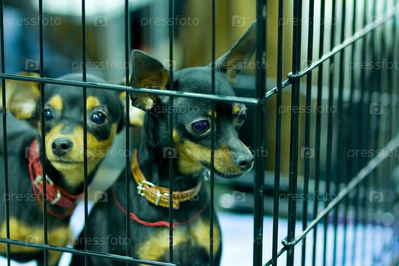 Собачки породы пражский крысарик в клетке