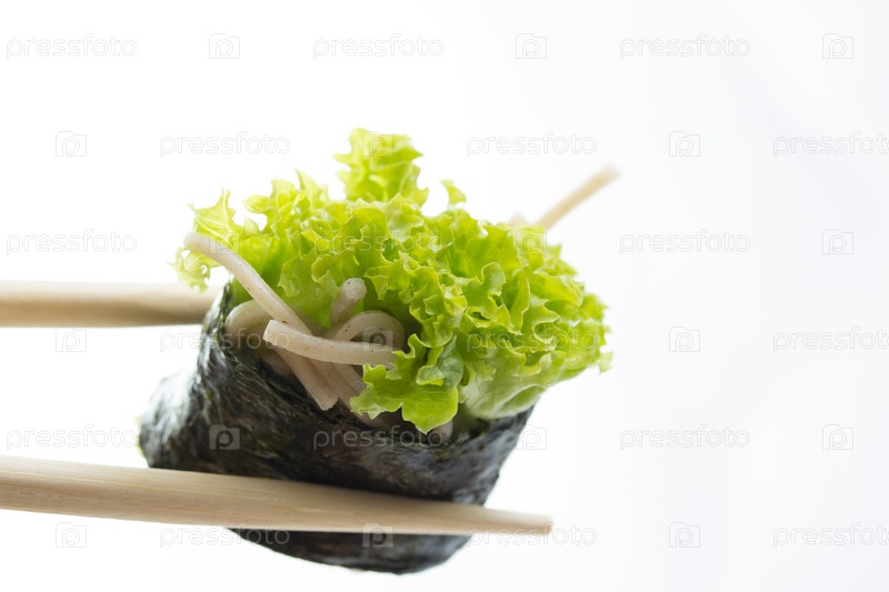 Суши-ролл с лапшой соба, изолированный на белом фоне
