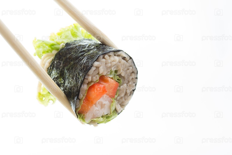 Суши-ролл с лапшой соба, изолированный на белом фоне
