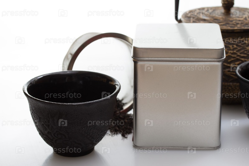 Черный азиатских чайник и чай, винтажный стиль