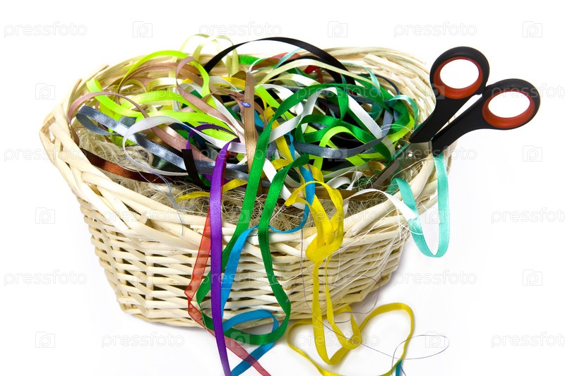 Цветные шелковые ленты для вышивания в корзине