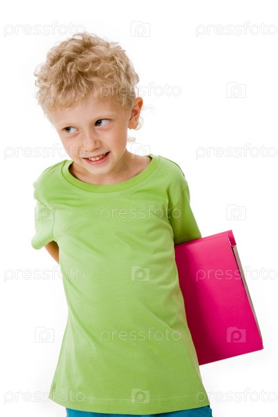 Портрет улыбающегося молодого мальчика, держащего книгу