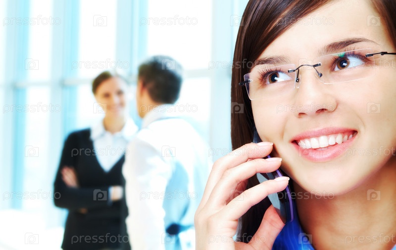 Молодая брюнетка разговаривает по сотовому телефону