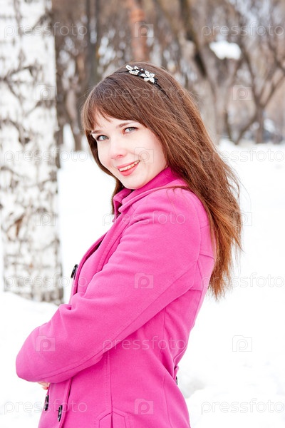 Красивая девушка зимой в парке