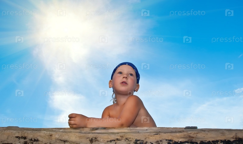 Мальчик против голубого неба в ожидании чего-то