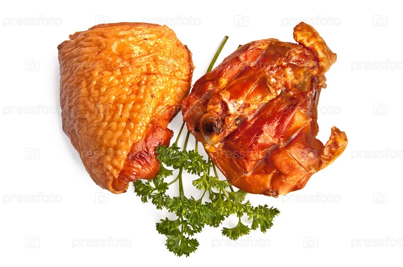 Два кусочка курицы на белом фоне
