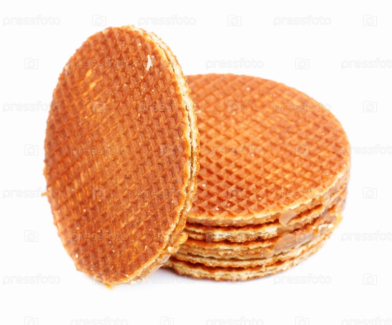 Стопка голландских вафель на белом фоне