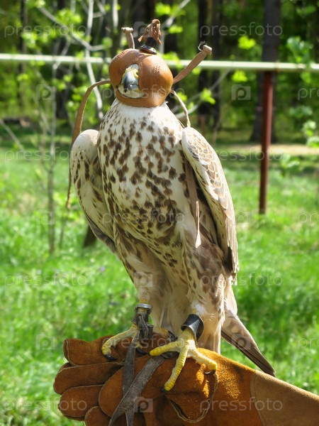 Сокол в чепчике перед спортивной охотой