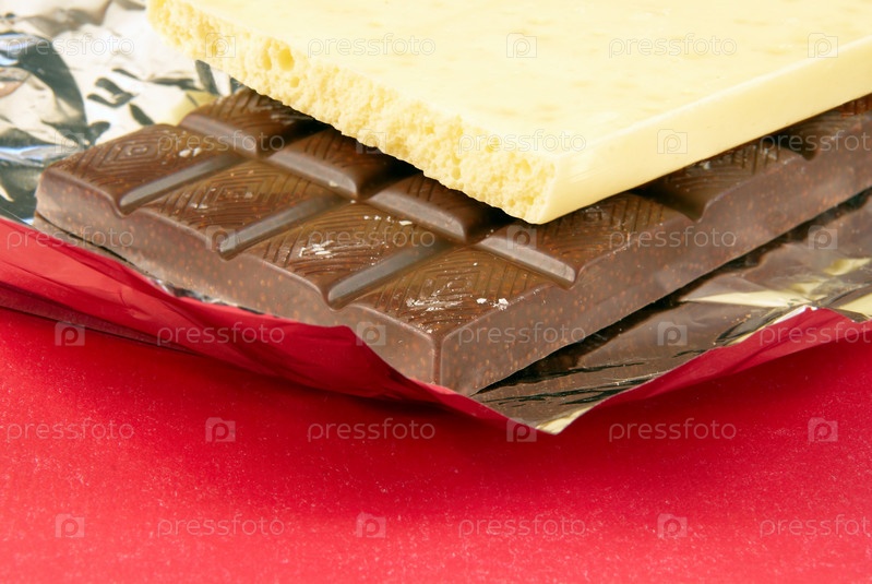 Плитка темного и белого шоколада в фольге