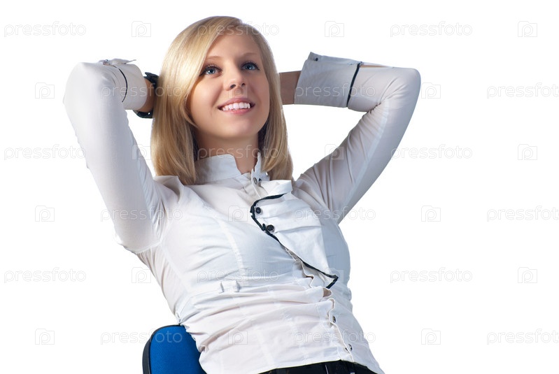 Молодая деловая женщина отдыхает, сидя на стуле