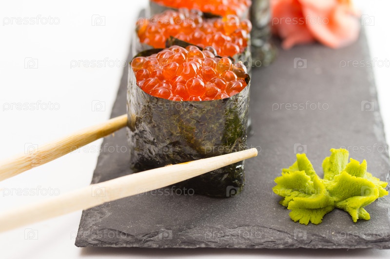 Гункан маки суши, изолированные на белом фоне