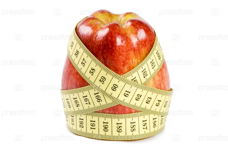 Яблоко и сантиметр на белом фоне