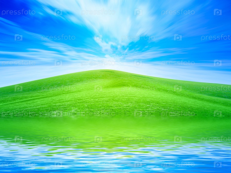 Зеленый холм возле реки