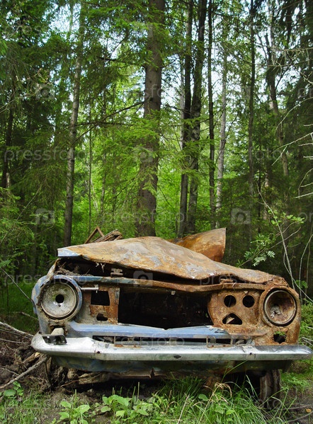 Старый ржавый автомобиль в лесу