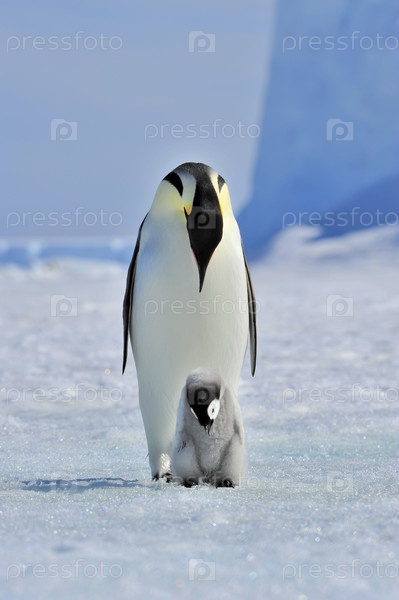 Императорский пингвин с птенцом на острове Сноу-Хилл в Антарктике, путешествие на ледоколе "Капитан Хлебников"
