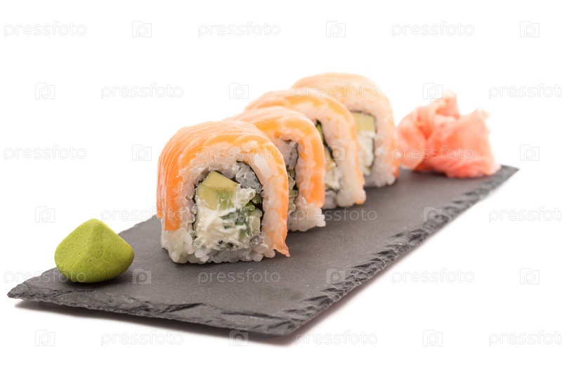 Суши ролл Филадельфия, изолированные на белом фоне