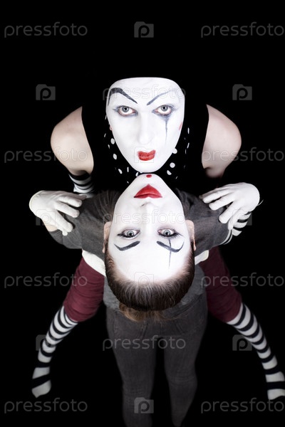 Два мима на черном фоне