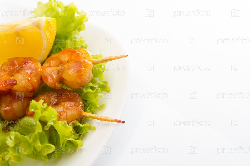 Жареные креветки, изолированные на белом фоне