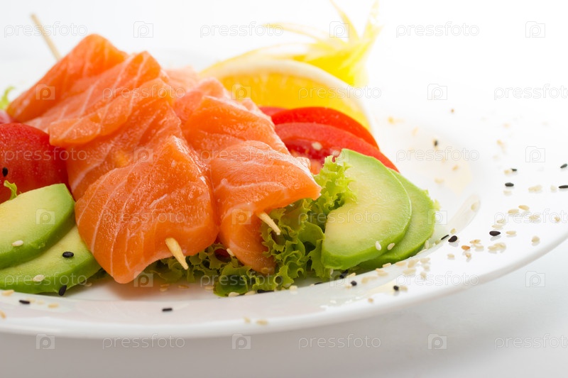 Сырой лосось на шпажках с овощами