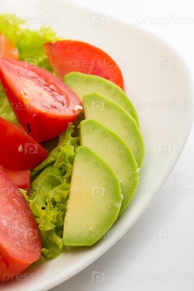 Сырые авокадо, помидор, салат