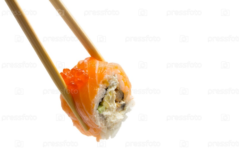 Суши-ролл на белом фоне