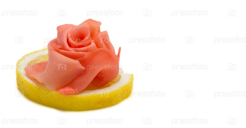 Имбирь на лимоне на белом фоне