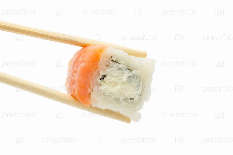 Суши-ролл Филадельфия на белом фоне