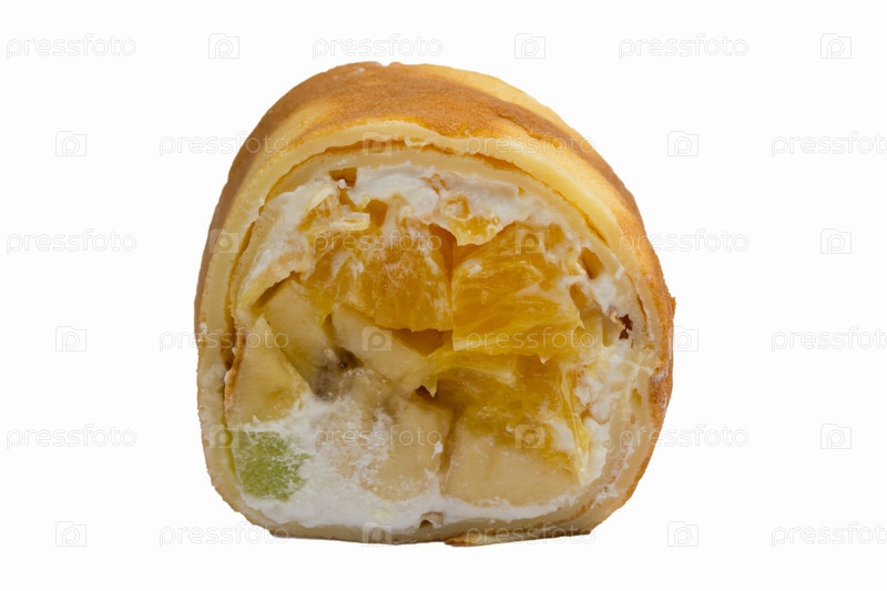 Сладкие суши роллы на белом фоне
