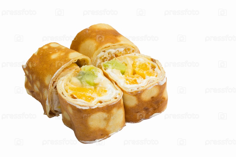Сладкие суши роллы на белом фоне