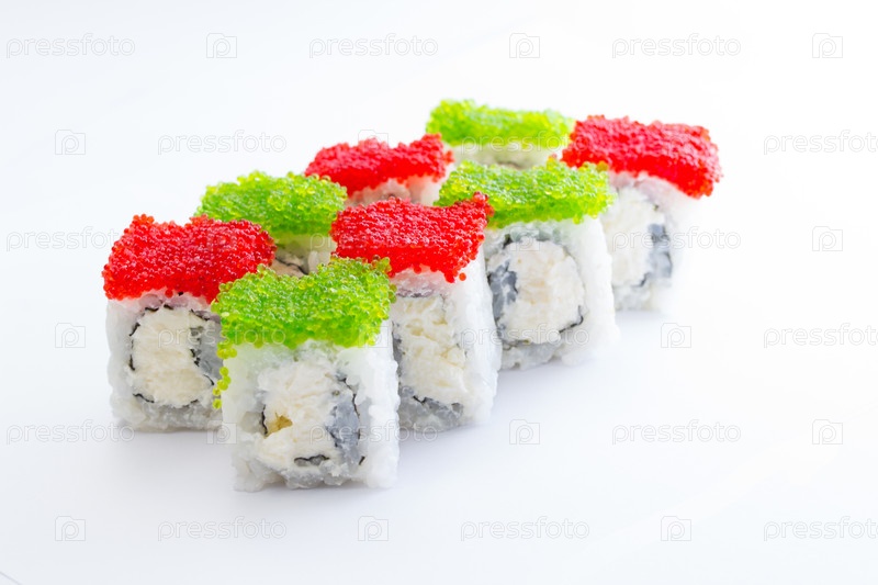 Суши-роллы с зеленой и красной икрой