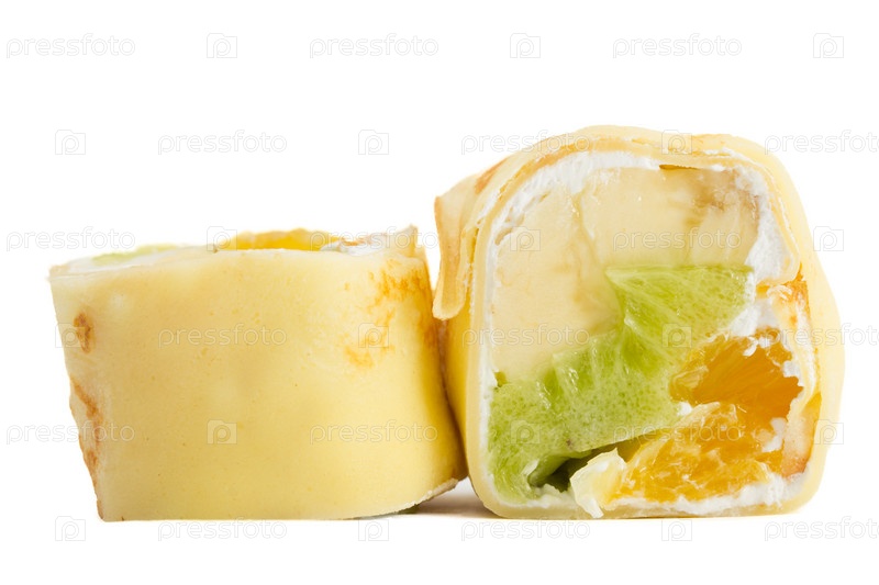 Сладкие суши роллы на белом фоне