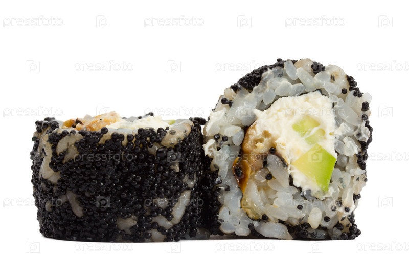 Суши-роллы с черной икрой, изолированные на белом фоне