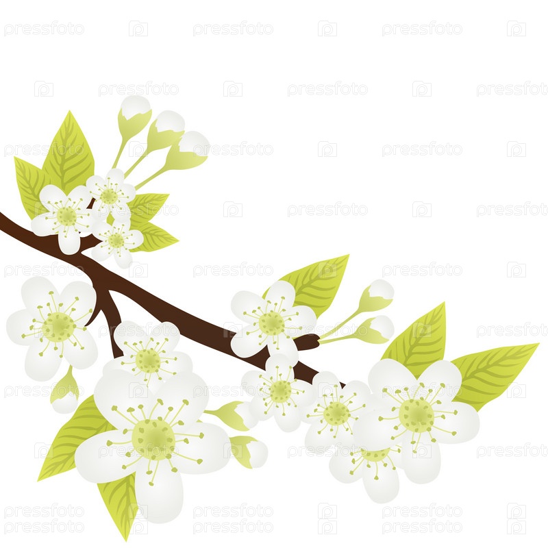 Весенняя ветка с белыми цветами