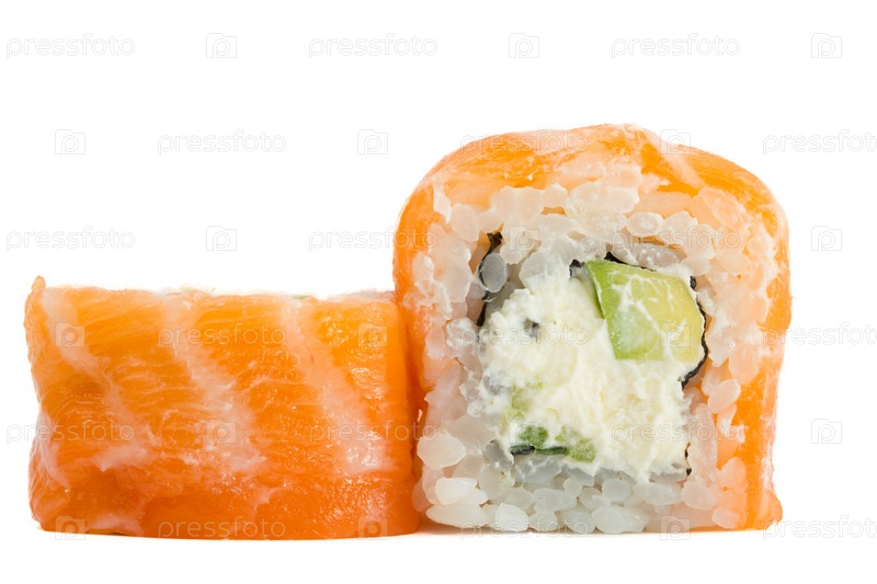 Суши роллы с лососем, изолированные на белом фоне