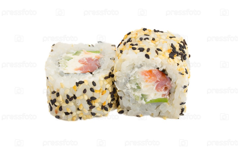 Суши-ролл с кунжутом, изолированные на белом фоне