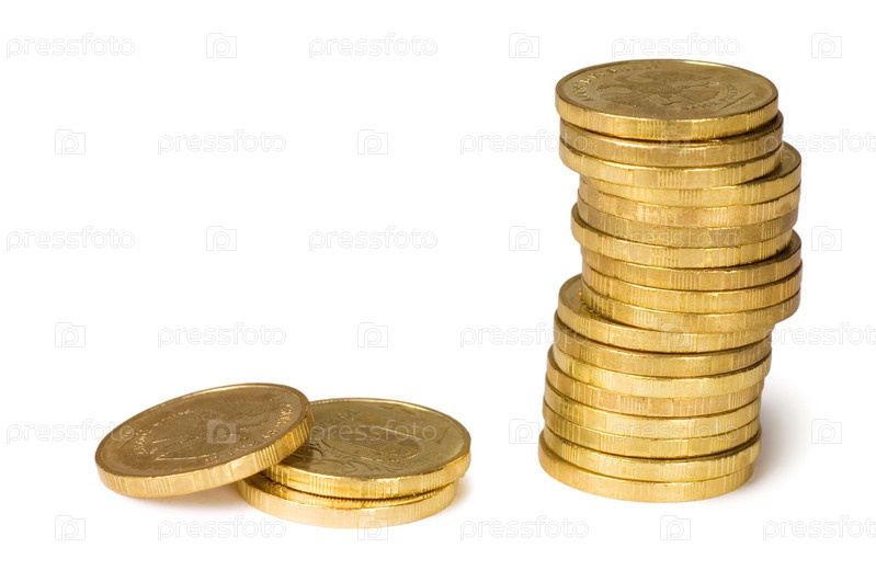 Золотые монеты на белом фоне