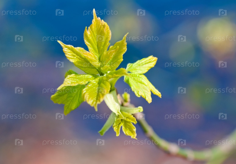 Зеленые листья на фоне голубого неба
