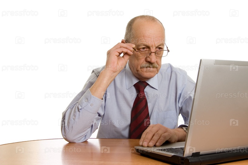 Пожилой бизнесмен работает на ноутбуке
