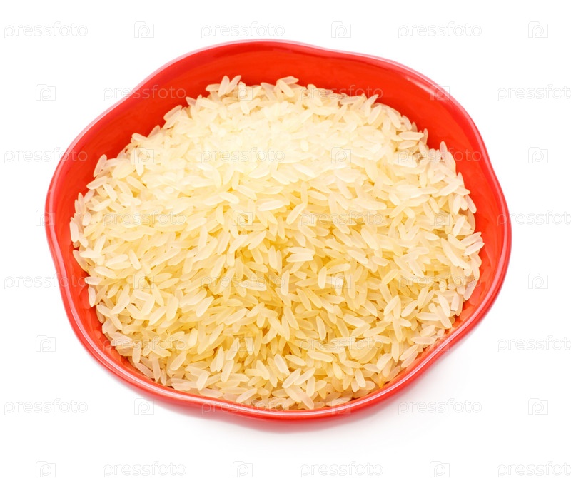 Миска с рисом на белом фоне