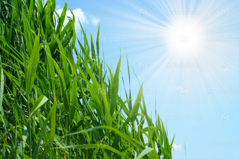 Зеленая трава на фоне голубого неба